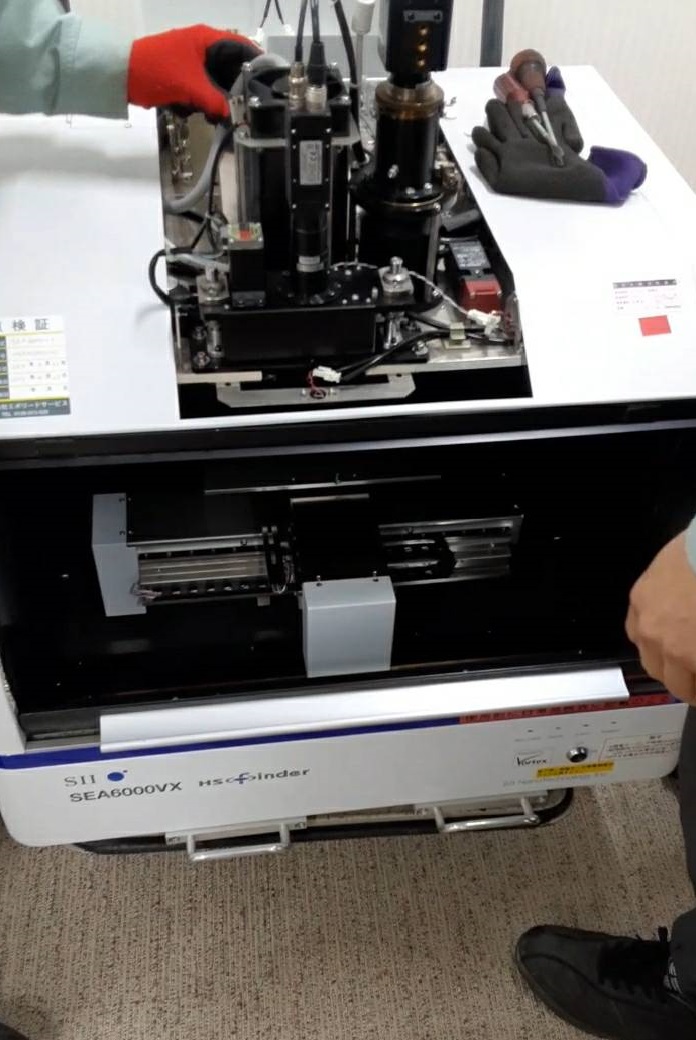 装置の外装を取り外し、内部の有害物質(ベリリウムの使用される管球・検知管部分)を慎重に取り除いていきます。